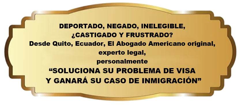 El beneficio de una consulta con el Abogado Americano se destacará rápido con un análisis y presentación ofrecida por este Abogado Tribunal de la Corte Suprema de los Estados Unidos de América, genial, experto, bilingüe e informativo con 50 años de experiencia de inmigración, más de 25 años de los cuales mientras en el Ecuador y durante su carrera ha proporcionado veinte mil consultas y ha recibido más de cien mil llamadas con la oportunidad de visitar con más de doscientas mil personas ofreciendo los servicios originales y las soluciones profesionales expertas bien destacadas, beneficiosas, creativas y económicas, tanto en el Ecuador como en los Estados Unidos de América.